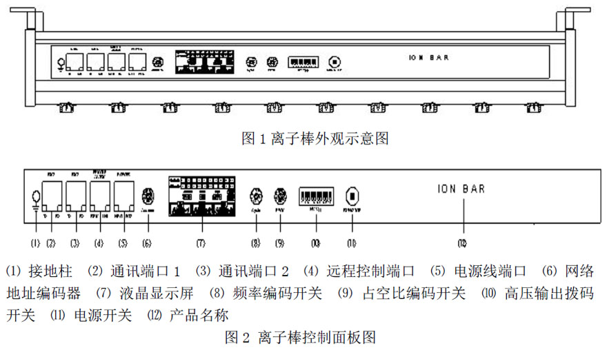(2) 離子棒放電極周圍應(yīng)遠(yuǎn)離金屬導(dǎo)體、金屬接地體,棒體必須可靠連接接地線。